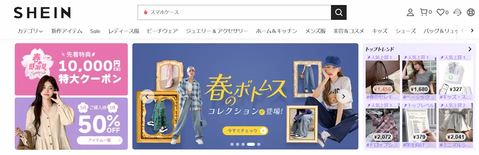 SHEIN (シーイン)は、ファッション&ライフスタイルの総合ネット通販サービスで、シンガポールに本社を持つ中国系のECサイトです。