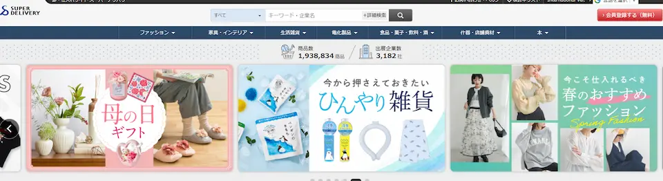 国内最大級の卸売サイトで、ファッションをはじめ雑貨や小物も幅広く取り扱っています。