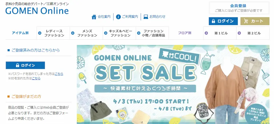GOEMEN Online(江綿オンライン)は、衣料小売店の総合デパートの江綿株式会社が運営するサイトです。