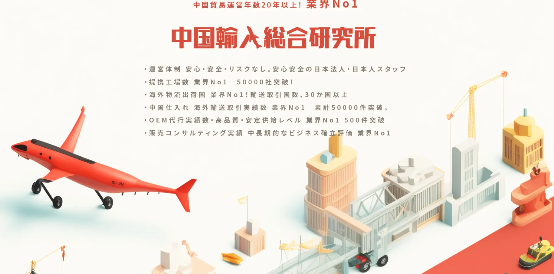 | 主なサービス | ・ECサイト/中国4大卸市場直買付サービス ・ブランド代理販売権の提供 ・OEM/ODMオリジナル商品制作代行 ・日本水準の検品/補修サービス ・仕入原価計算ツールの無料提供 ・Amazon FBA直送 ・撮影/翻訳/輸入記事等の販促サービス |