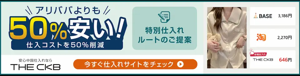 初心者の方に敷居が高い面もありますが、弊社の「THE CKB×1688」を利用頂くことで、中国輸入の新たなステージへ進むことも可能でしょう。