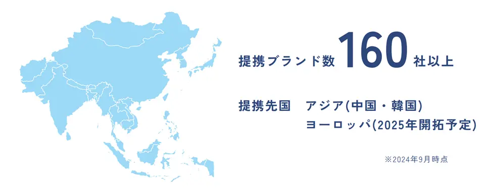 THE CKEでは中国・韓国の160社以上の人気ブランドと提携しており、日本における代理販売権を提供しています。