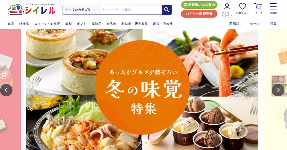 シイレルは食品専門のB2B型卸売サイトで、ドロップシッピングにも対応しているため、大量の食品を無在庫販売することが可能です。