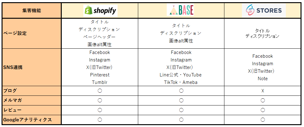 Shopifyは高度で戦略的なSNS活用との相性が抜群であり、BASEとSTORESは、主要SNSと手軽に連携し、国内ユーザーへアプローチしたい場合に適しています。