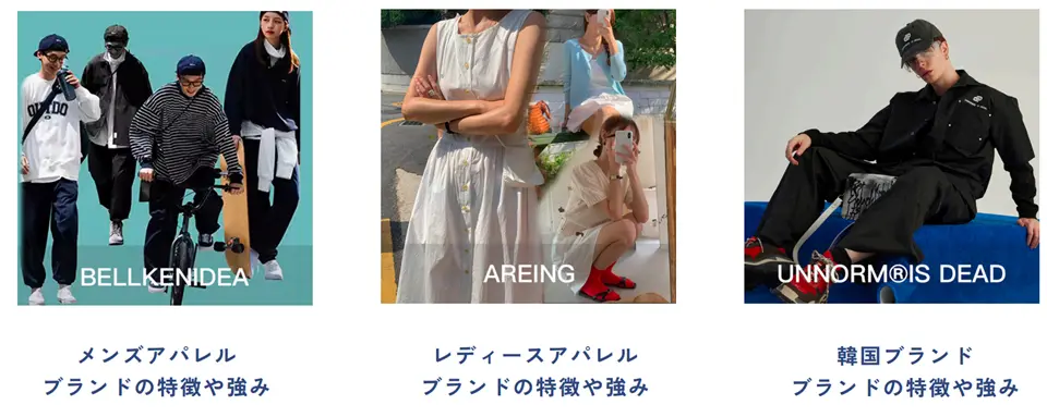 自社ネットショップを開設したばかりの事業者で、自社ブランドの認知度と信頼感を上げたい方には、以下のような中国・韓国の人気ブランドの代理販売権の利用も検討頂けます。