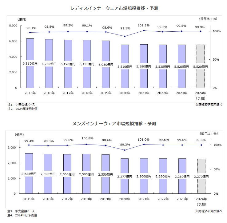 出典:矢野経済研究所│レディスインナーウェア・メンズインナーウェア市場規模推移・予測(2024年)